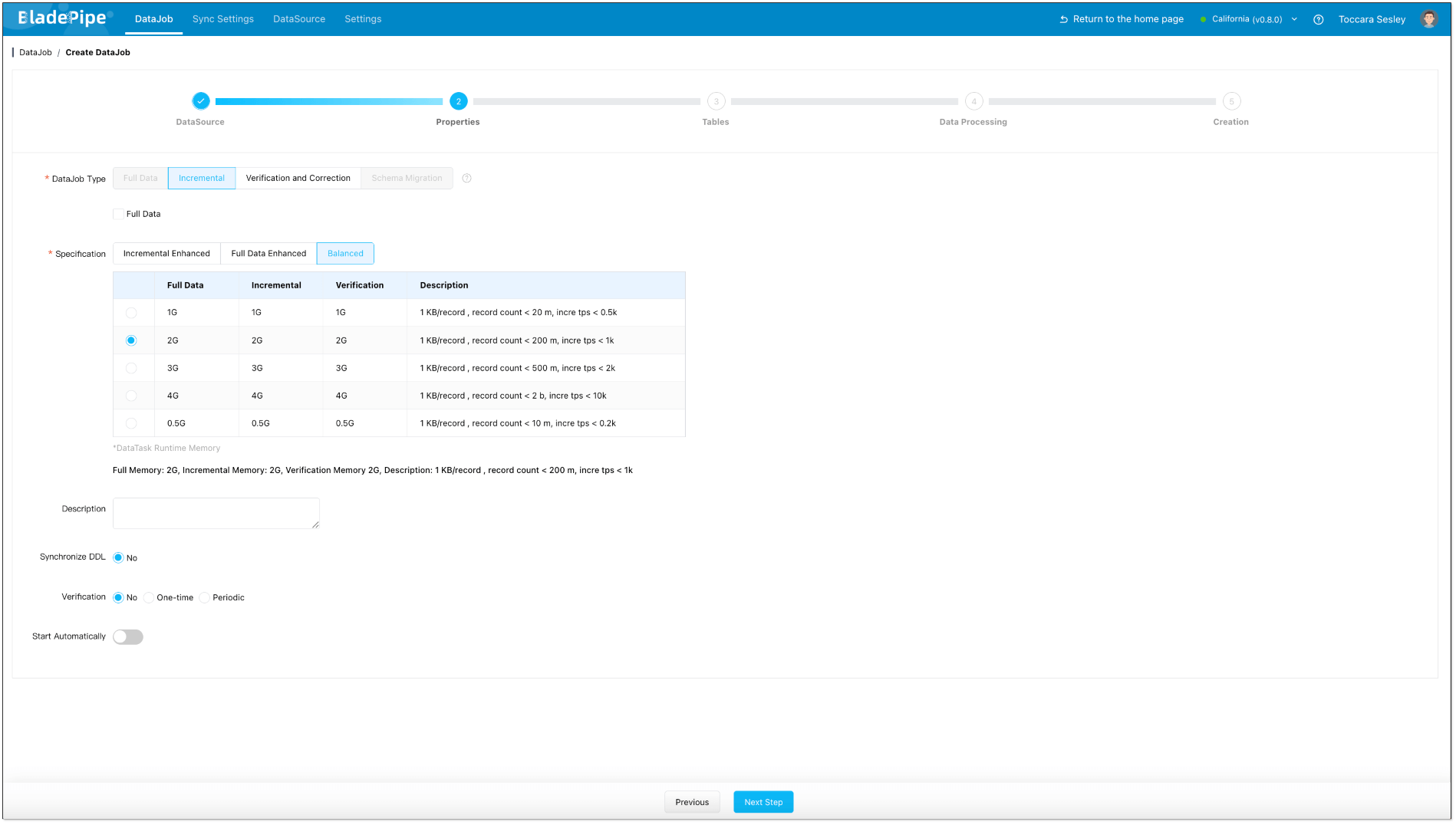 - Select Incremental for DataJob Type, together with the Full Data option.