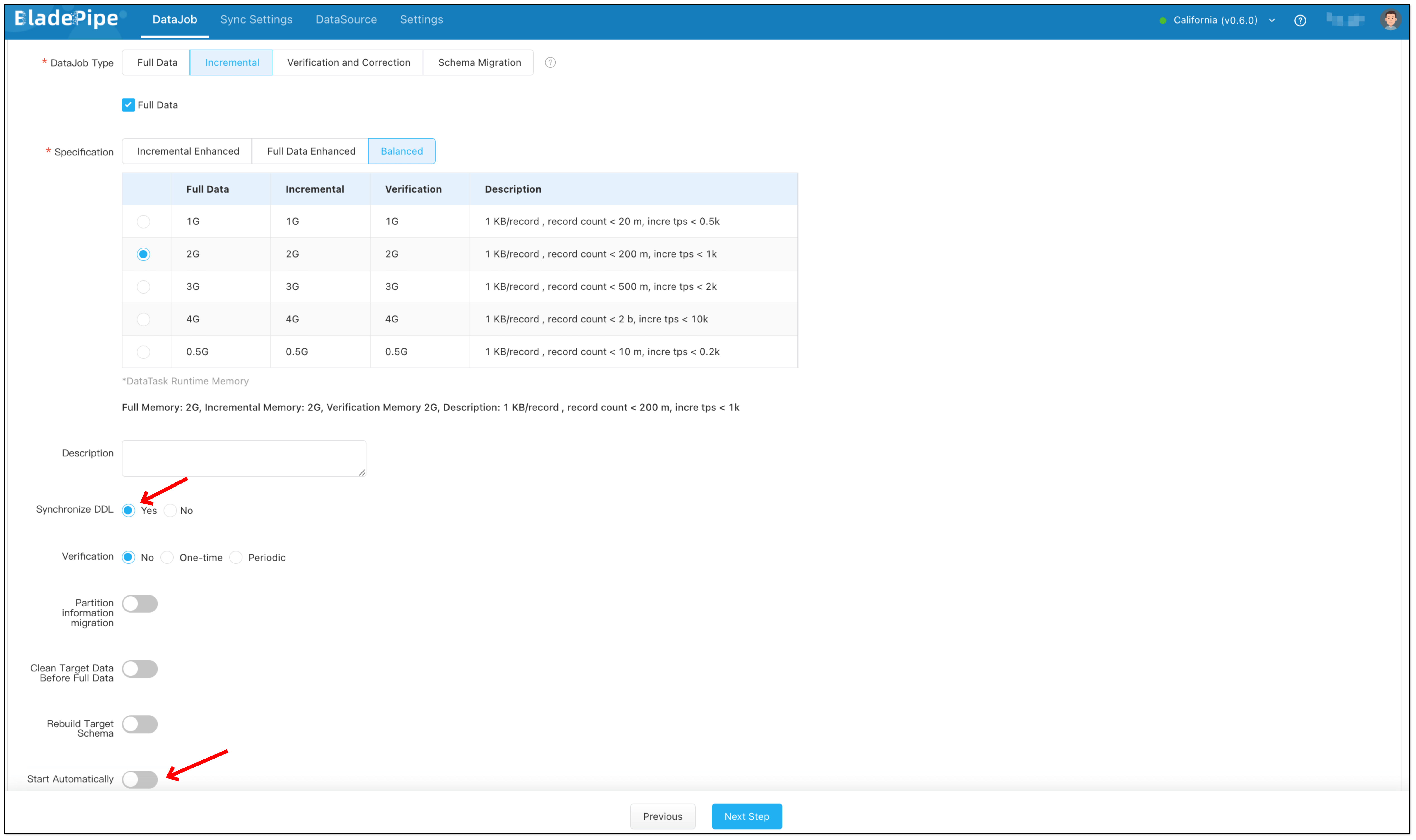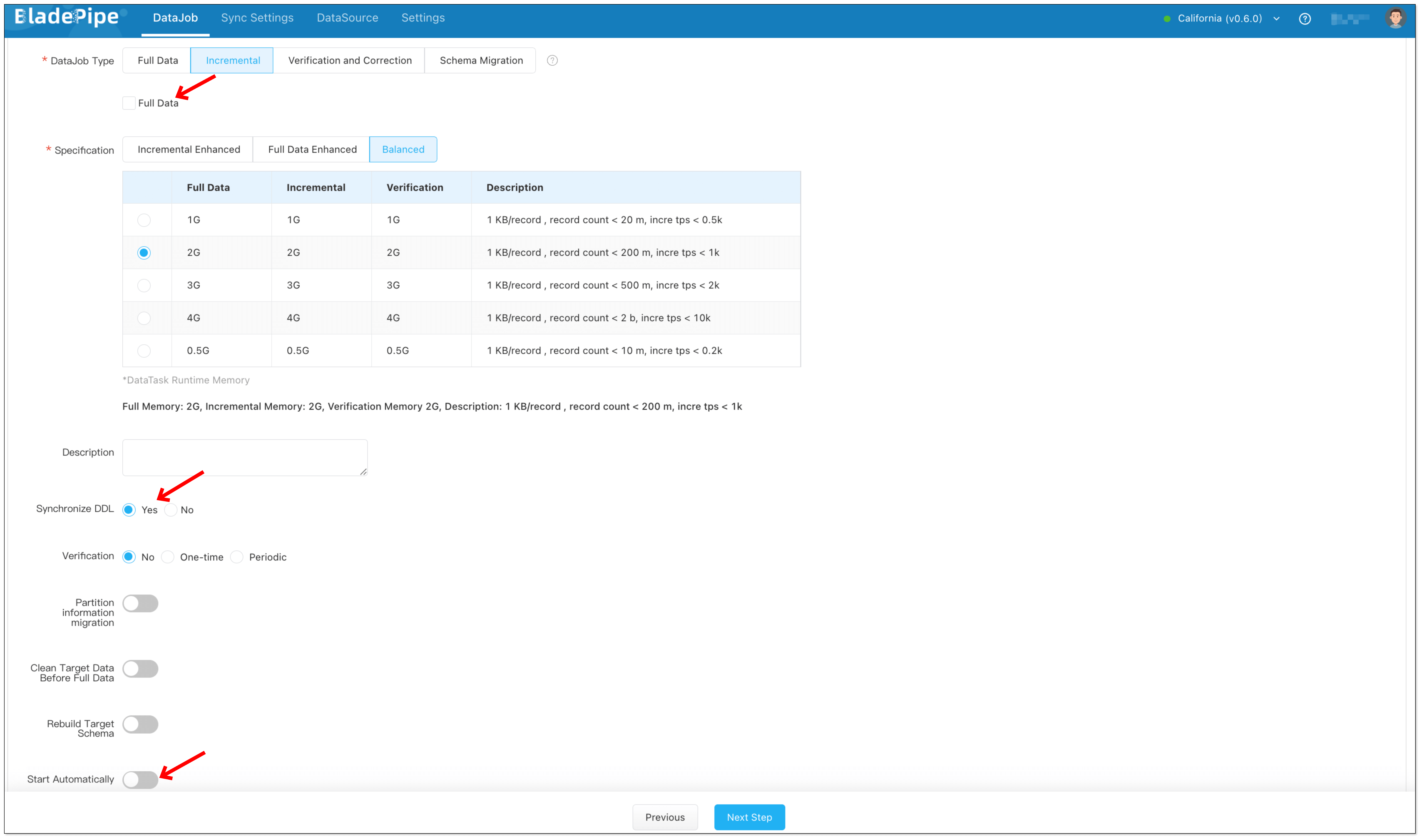 - Select Incremental for DataJob Type, together with the Full Data option.
