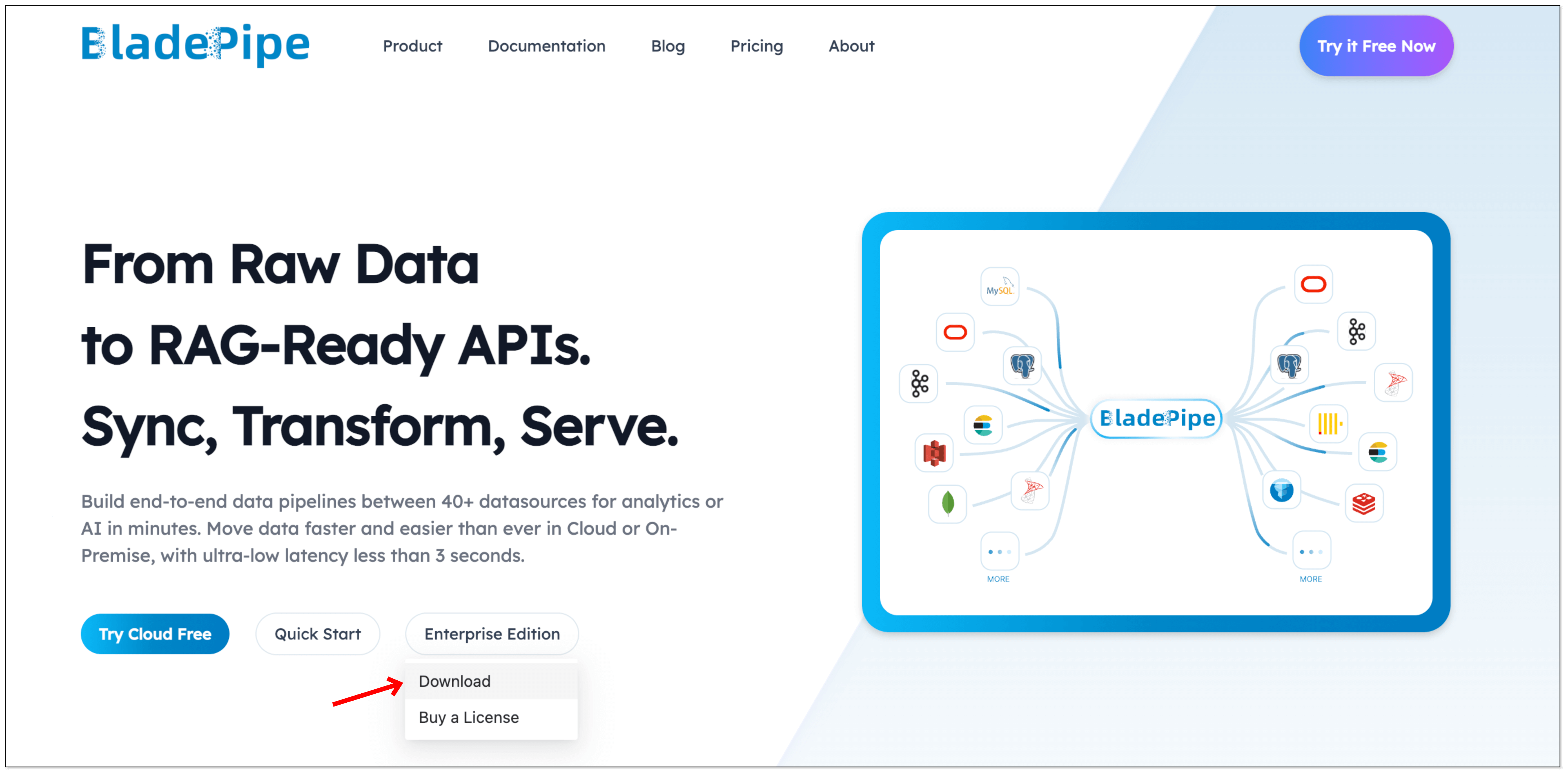 - Log in to BladePipe, and click Enterprise Edition > Download.