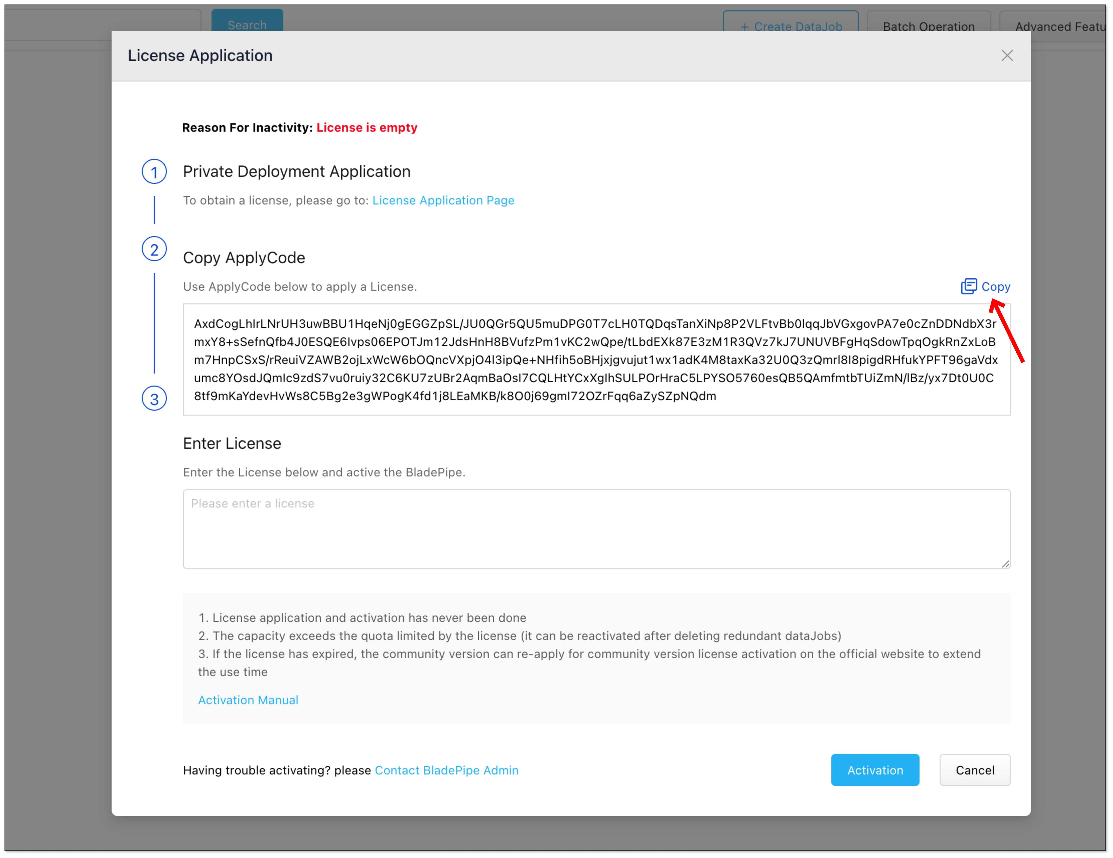 This page introduces how to activate BladePipe On-Premise.