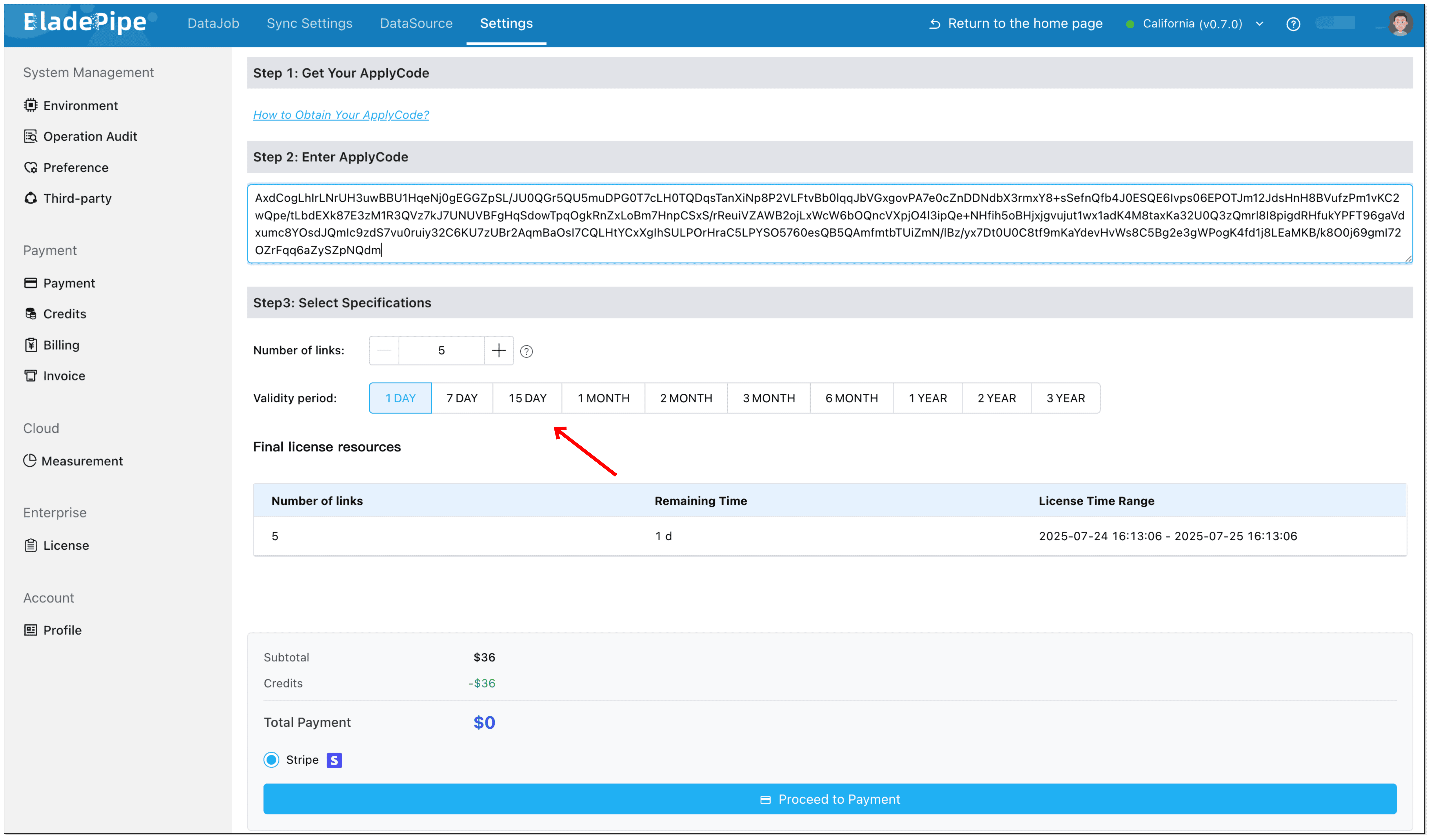 - Select the number of links and duration. For more details, please refer to Pricing.